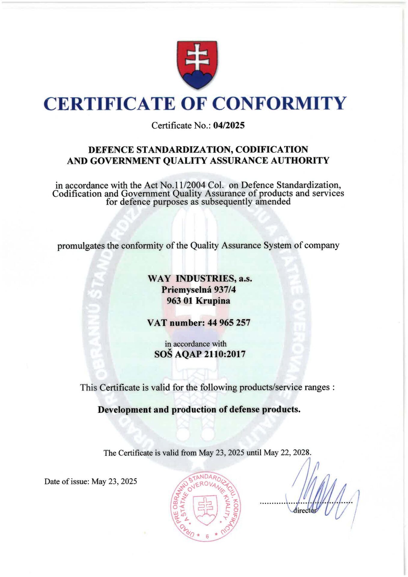 With a proud track record of 50 years’ experience in the industry, Way Industries a.s. is the trusted partner of various Defence Forces and other business partners around the world.