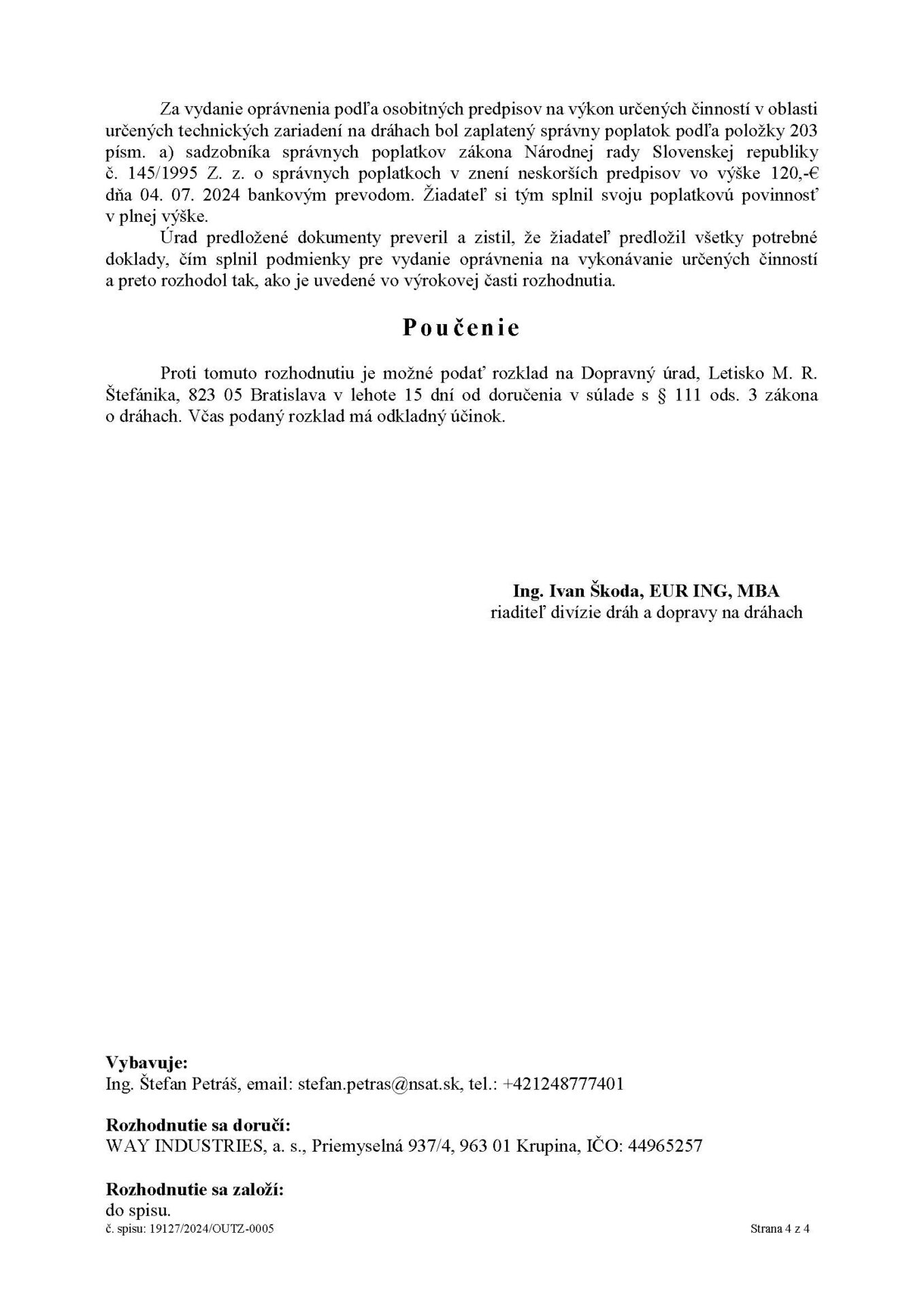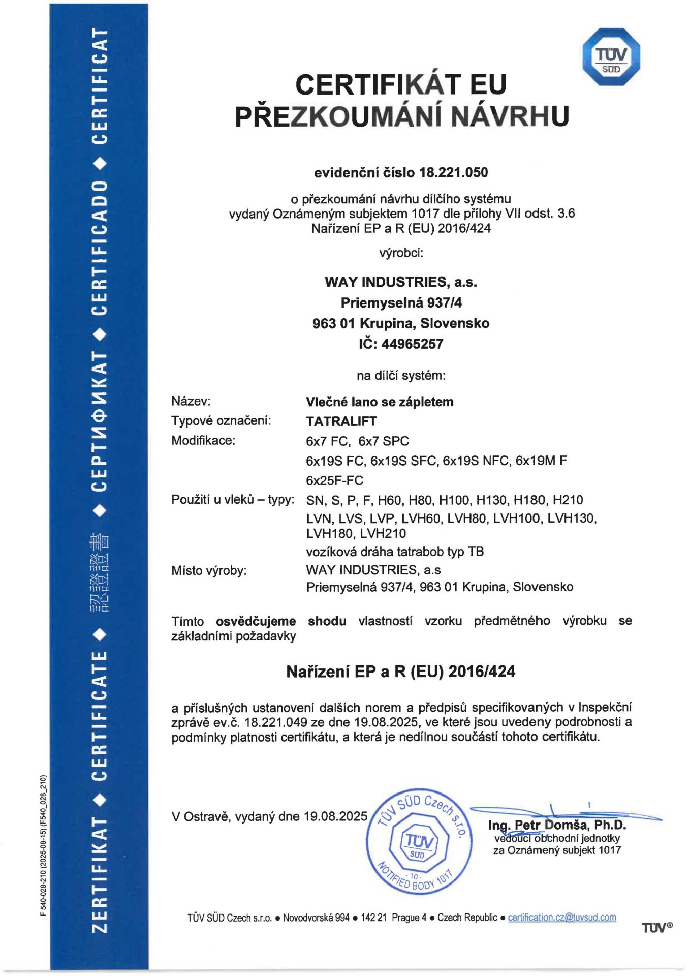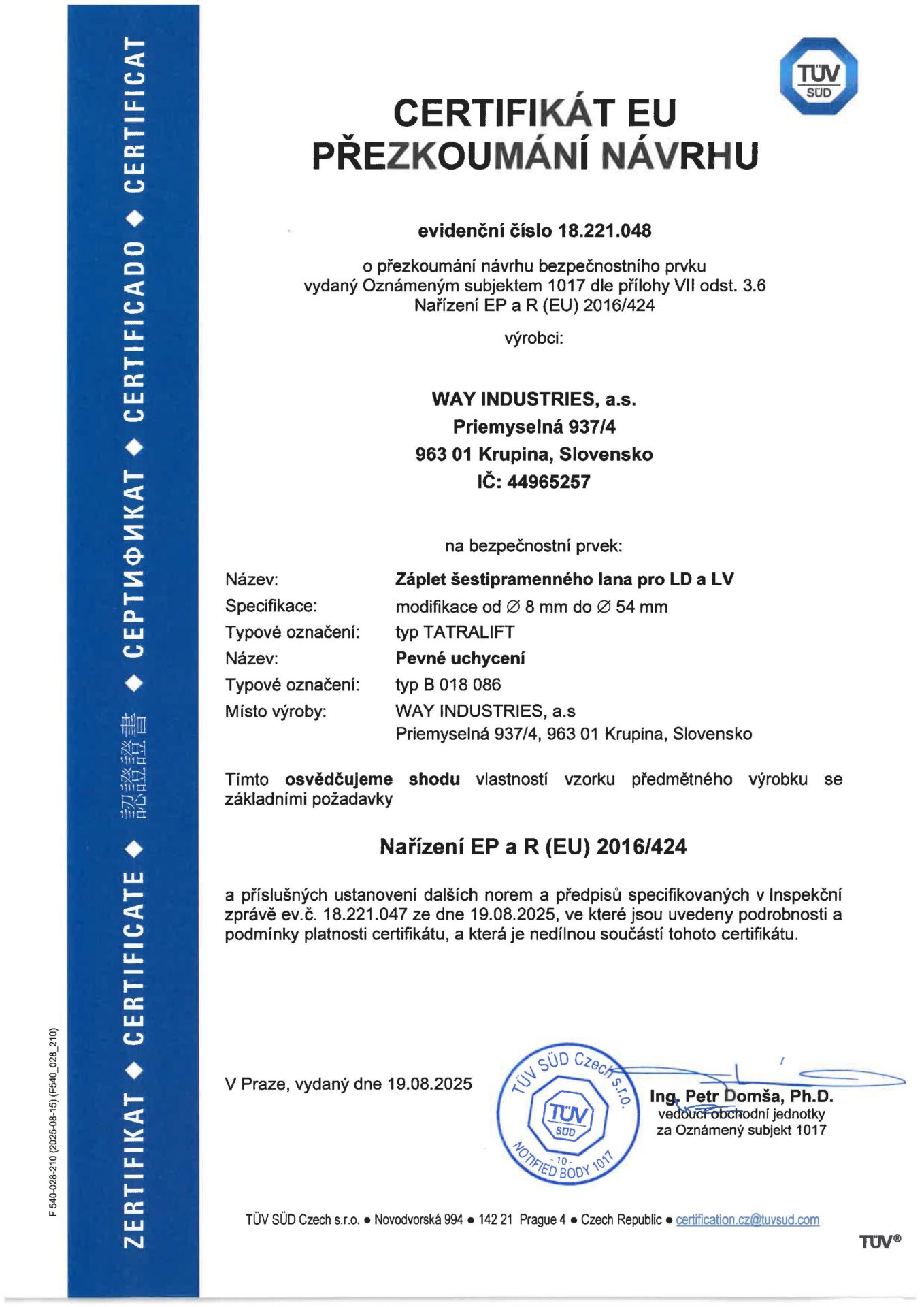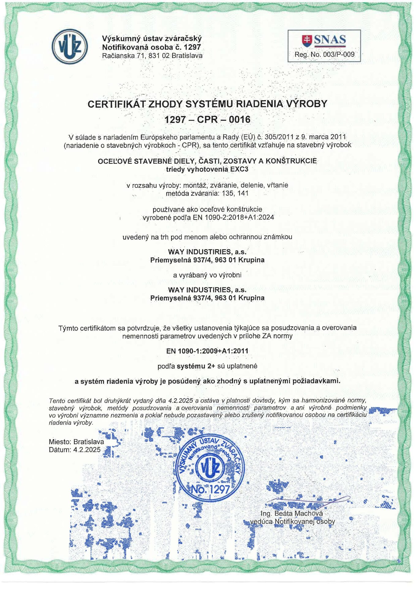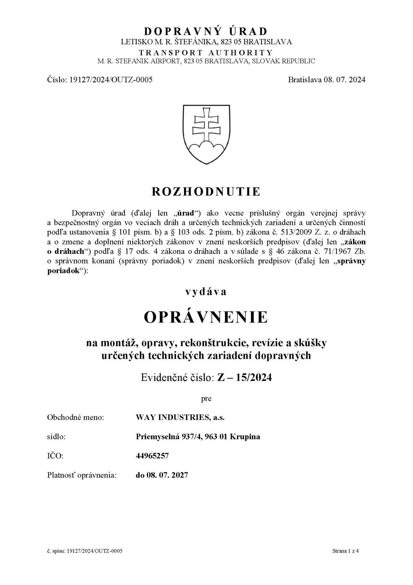2001 - apríl, zmena štruktúry akcionárov, nový  názov a.s. - WAY INDUSTRY