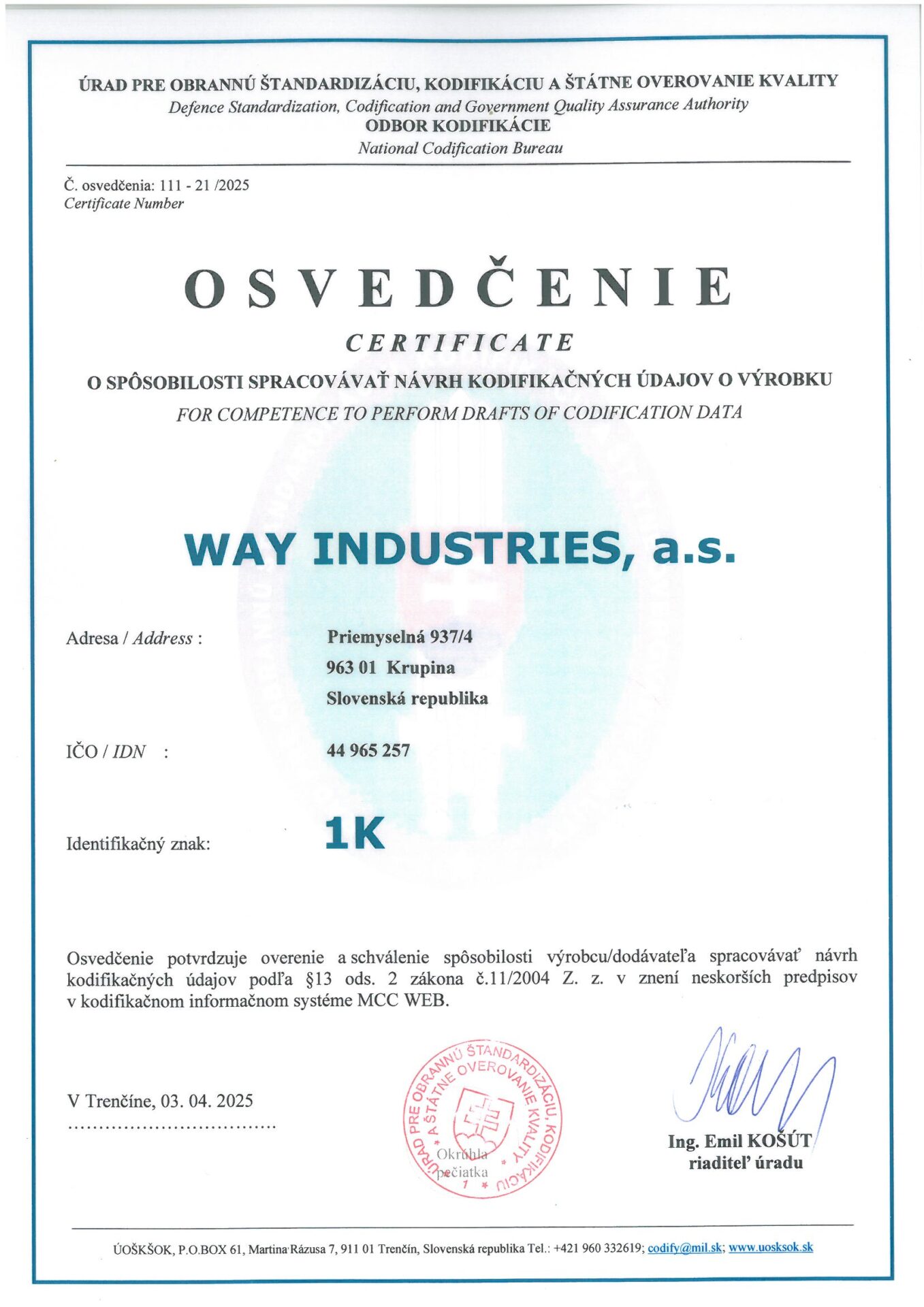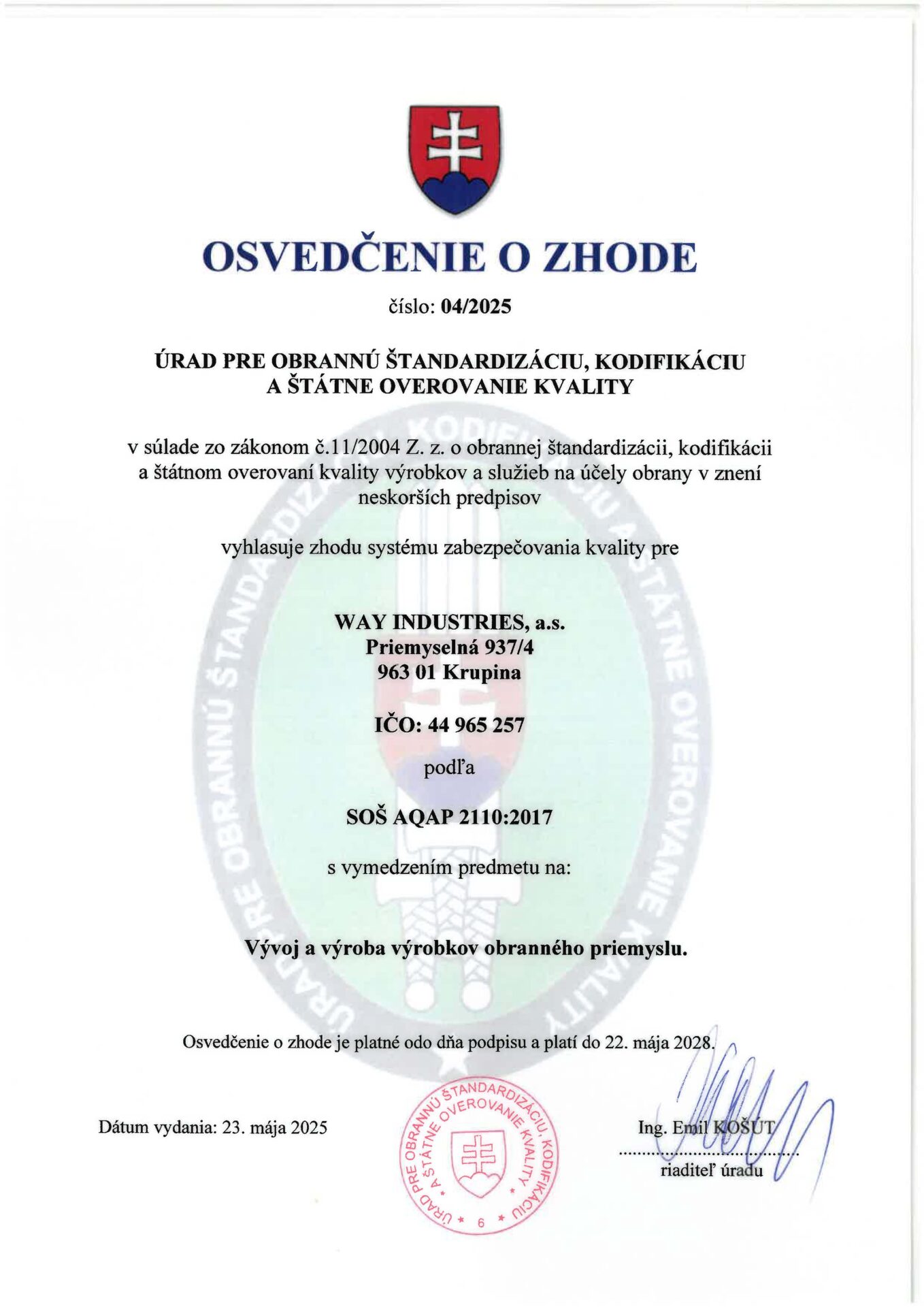 S podnikmi po celej Európe, Ázii a Afrike ponúkame našim zákazníkom jedinečné produkty a služby, pri ktorých dodržiavame prísne pravidlá kvality. Way Industries a.s. je dôveryhodným partnerom pre rôzne obranné sily a iných obchodných partnerov po celom svete. Našu spoločnosť možno považovať za celosvetového lídra vo svojom výrobnom odvetví, najmä v oblasti odmínovania a vojenských služieb.